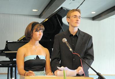 Aber nicht allein aus diesem Grund haben die jungen Erwachsenen die Prüfungen bestanden, die ihnen die sieben Jahre am Ernestinum aufgegeben haben – und dabei ging es beileibe nicht um Schulnoten allein. Gestern haben die Abiturienten eindrucksvoll gezeigt, mit welchem Rüstzeug sie ins Leben starten – wenn zum Beispiel Britta Harting bei einem Gesangssolo mit einer Stimmgewalt beeindruckt, um die jede Souldiva sie beneiden würde. Wenn Joanna Dommnich und Sebastian Schlinkheider bei ihrer Abi-Rede vor einem vollen Saal mit einem ironisch-pointierten Rückblick auf sieben Jahre am Gymnasium brillieren. Wenn sich die Abiturienten laut jubelnd wie selbstverständlich für ihre Mitschüler freuen, die für besondere Leistungen ausgezeichnet werden. Wenn der gesamte Jahrgang in Standing Ovations dem Lehrerchor für dessen musikalische Glückwünsche dankt. Und wenn – so viel dann doch zum Thema Leistung – Thorben Möller, Julia Kroh (beide Chemie), Annika Biro, Stefan Brand, Jan Vincent Düvelshöft, Fabian Schwedler, Felix Held (alle Physik), Joanna Dommnich (Englisch, Deutsch und Geschichte), Thomas Bergmann (Französich; laut Fachlehrer „Franzose mit Herzblut“), Imke Pulz, Marcus Golding (beide Geschichte), Jahrgangsbester Sebastian Schlinkheider und der E-Kurs Geschichte für herausragende Leistungen ausgezeichnet werden.
