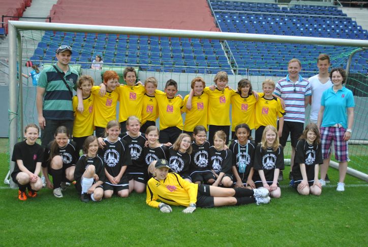 Insgesamt waren die Mädchen und Jungen der 5. und 6. Klassen des Ernestinums stolz auf das Erreichte. Immerhin beteiligten sich über 35 Mannschaften aus ganz Norddeutschland an dem Turnier, die ausnahmslos auf einem hohen fußballerischen Niveau spielten. Neben dem rein Sportlichen begeisterte die Schüler aber auch die Turniergestaltung an sich. So war der Austragungsort schon etwas Besonderes: Die AWD- Arena, in der sonst die Bundesligaspiele stattfinden. Wie die „echten Profis“ durften die Rintelner die Gästekabine nutzen, wo sich sonst die Bayern- oder Dortmund- Spieler umziehen, um dann durch den „Tunnel“ auf das Spielfeld einzulaufen. Hier war nicht nur der „perfekte Rasen“, sondern auch die Atmosphäre eindrucksvoll. Besonders, wenn die Anfeuerungsrufe der Rintelner „Fans“, bestehend aus Eltern, Großeltern und Mitschülern, von der Osttribüne schallten.