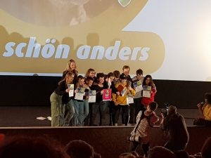 Die Klasse 8-4 hat es geschafft: Mit ihrem selbst produzierten Kurzfilm „Alle, außer uns“ haben sie den niedersächsischen Kurzfilmwettbewerb „ganz schön anders“ gewonnen. Die Entscheidung der Jury fiel am Mittwochvormittag, den 22.02.2023, im Astor-Kino in Hannover.