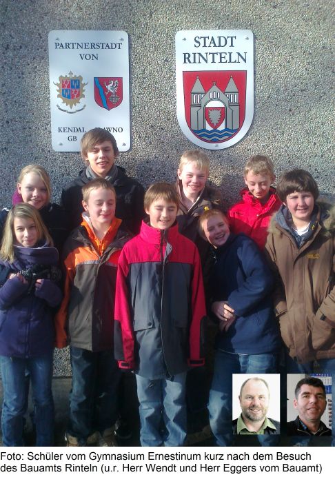 Zum Abschluss des Workshops besuchten wir das Bauamt in Rinteln. Dort erklärten uns Herr Wendt und Herr Eggers anhand verschiedener Beispiele wie Ortsteile und deren einzelne Grundstücke aufgeteilt sind und wie sie genutzt werden. Sie zeigten uns Flächennutzungspläne, Flurkarten und einen Bebaubauungsplan. Dabei gibt es viele verschiedene Vorschriften, z.B. dass jedes Haus im Neubaugebiet „Pfennigsiek“ ein rotes Dach haben muss!