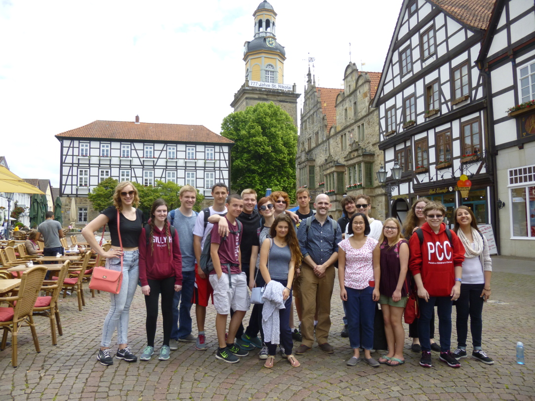 Wir freuen uns sehr, dass wir vom 8. bis 27. Juni insgesamt 16 Schülerinnen und Schüler der William Fremd High School bei uns in Rinteln begrüßen konnten, die von den US-Lehrern Jason Spoor-Harvey und Andrea Fritz begleitet wurden. Palatine ist der Nachbarort von Schaumburg/Illinois und liegt ebenfalls im Großraum Chicago. Die Unterbringung erfolgte in Familien der Austauschpartner. Für den dreiwöchigen Aufenthalt hatten wir ein vielfältiges Programm vorbereitet, das drei wesentliche Elemente enthielt: