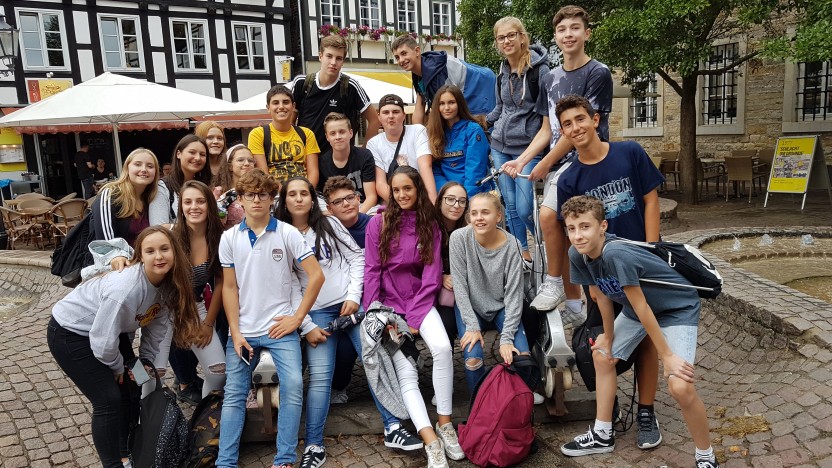 In Begleitung der Lehrerinnen Eva Sánchez und Raquel González war Anfang September eine Schülergruppe aus Getafe/Madrid am Ernestinum zu Gast. Unser Schüleraustausch mit dem Colegio Aristos fand dieses Jahr mit Schülern der Klassen 8-10 statt. Neben Städtetrips nach Hannover und Bremen standen auch Aktivitäten in der Region auf dem Programm. Die Rintelner stellten ihren spanischen Freundinnen und Freunden die Sehenswürdigkeiten der City vor. In Hameln verzauberte der „Flautista“ (Rattenfänger) alle Jugendlichen. Neu im Programm war diesmal ein Projekttag zum Abschluss: Im Unterricht erstellten Deutsche und Spanier gemeinsam ein Reisetagebuch mit Fotos und selbstverfassten Texten, das alle als Erinnerung behalten können.