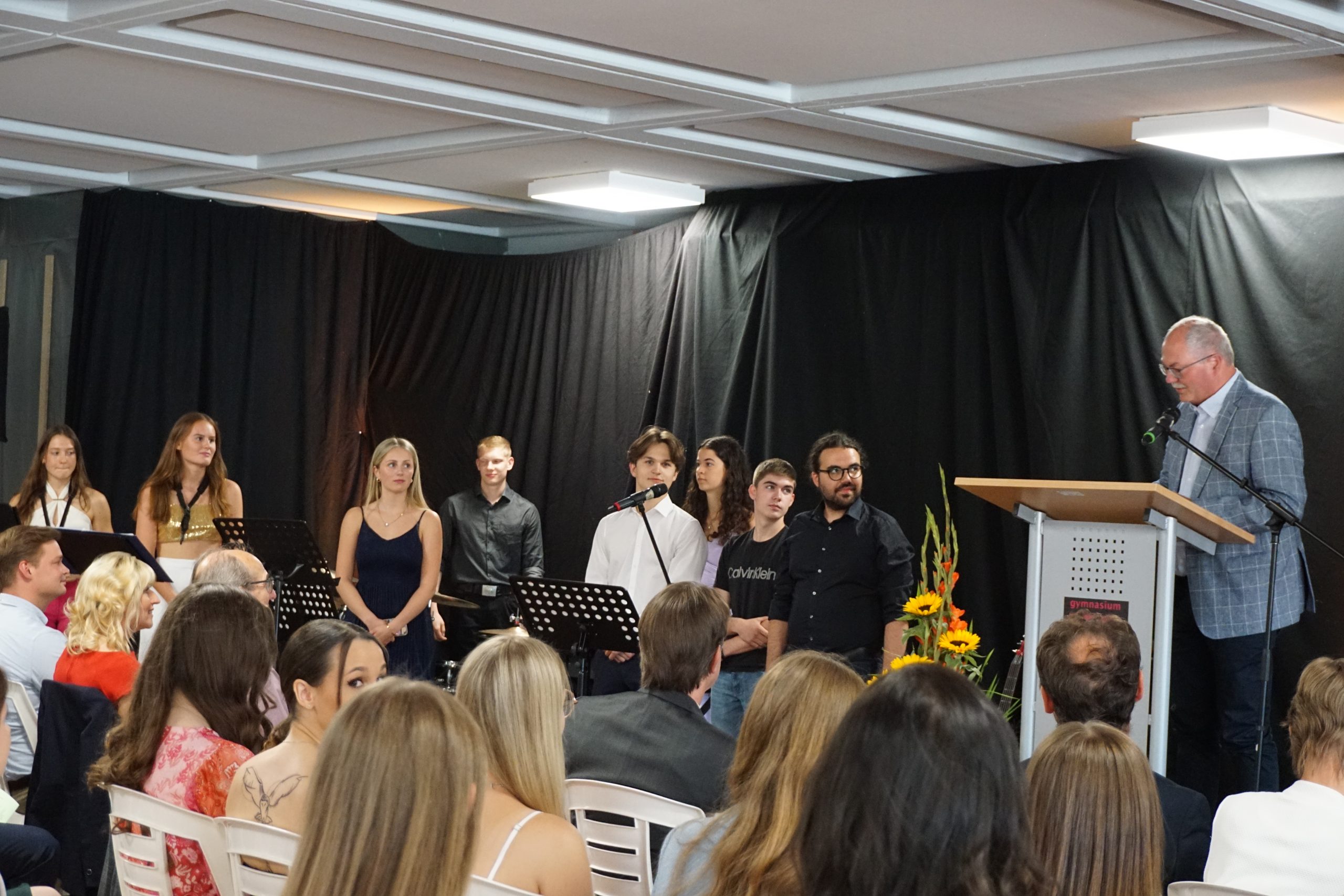 Verabschiedet wurden die Absolventen, die Eltern und Bekannten und das Kollegium mit Musik der Abi-Band mit Begleitung von Herrn Schwarzenberg. Allen Abiturient*innen wünschen wir viel Erfolg bei der Wahl der Universitäten bzw. der Bewerbung um Ausbildungsstellen.