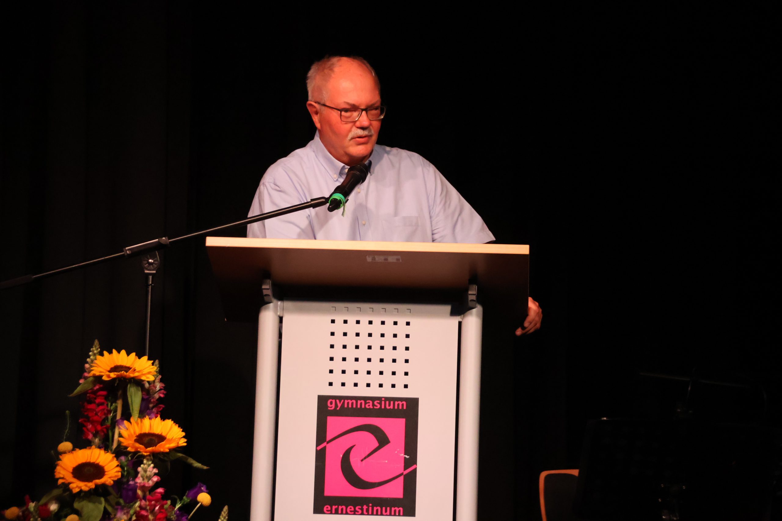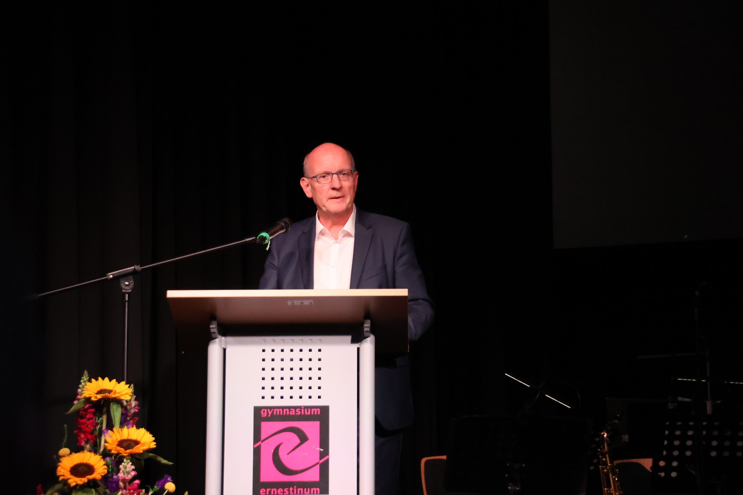Am 30.06.2025 war es soweit – unser langjähriger Schulleiter André Sawade wurde nach 28 Jahren am Ernestinum zum 31.07.2025 in den Ruhestand verabschiedet. Bei einer vielfältigen Feierstunde wurde als Bestandteil vieler Reden vor allem eines ganz klar – Herr Sawade hat das Ernestinum als Kapitän immer besonnen durch Krisen und Stürme gelenkt und dabei sowohl seine Steuermänner und -frauen als auch die Matros/innen stets im Blick gehabt, doch nun ist die Zeit gekommen, sich auf dem eigenen Segelschiff der wohlverdienten Ruhestands-Freizeit zu widmen und die Zeit mit der Familie bei französischer Kulinarik zu genießen. Dafür wünscht ihm das gesamte Ernestinum stets eine Handbreit Wasser unterm Kiel und steht jederzeit offen, wenn der Wind ihn mal für einen Besuch nach Rinteln treiben sollte.