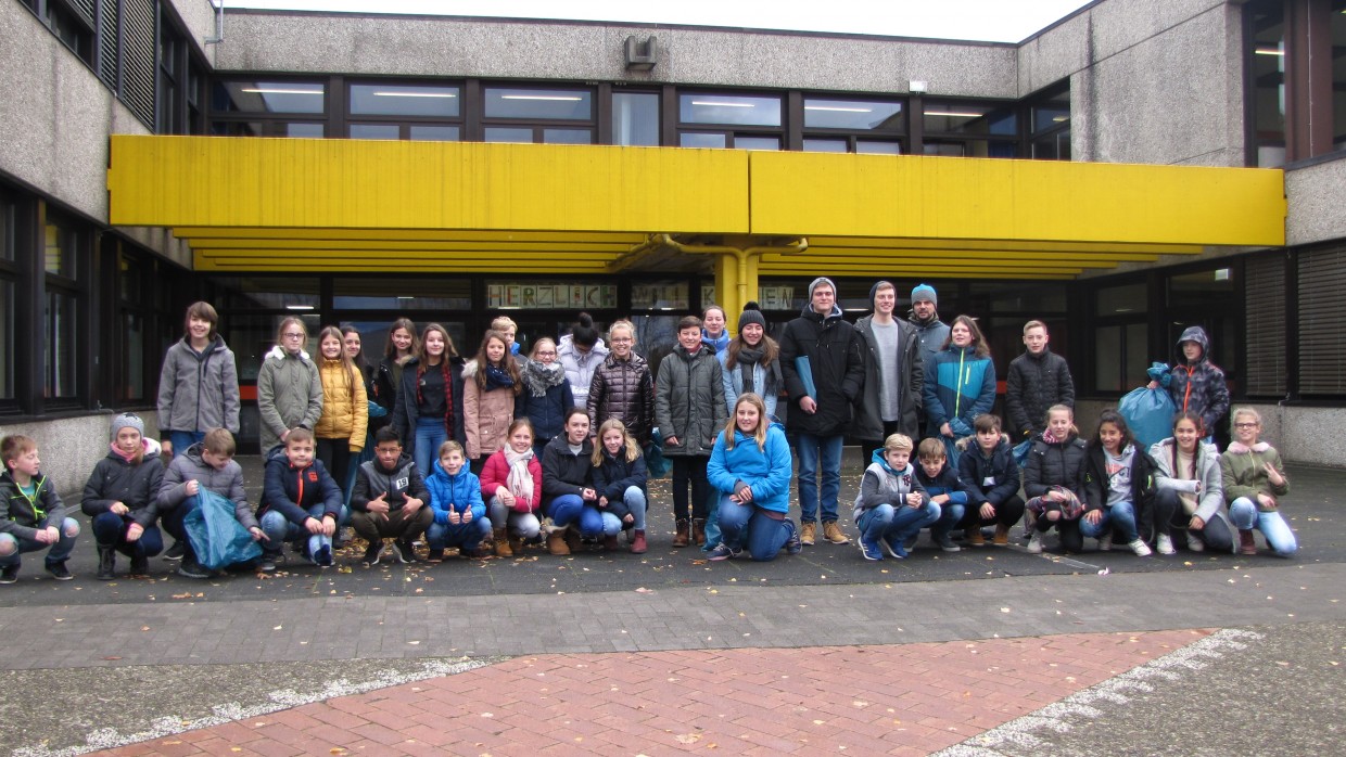 einer anderen Perspektive. Im Rahmen des Gesundheitsaspekts trotzte die Klasse 6-5 dem stürmischen Herbstwind und bereinigte das Schulgelände und die unmittelbare Umgebung von Pfandflaschen. Das kühle Wetter schuf auch eine angemessen stimmungsvolle Atmosphäre beim abschließenden Kuchenverkauf in der Aula. Wir werden berichten, wenn der Erlös aus den Aktivitäten an die UNICEF-Vertreter überreicht wird.