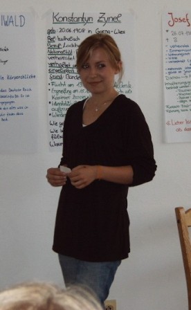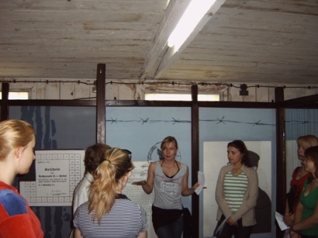wechselseitigen Führung präsentieren mussten. Die Führung begann mit dem Thema „Verhaftungsgründe und Häftlingsgruppen“ und endete mit dem Thema „Evakuierungsgründe und Todesmarsch“. Jede Gruppe wusste dann alles über das Konzentrationslager, wobei man den Eindruck hatte, dass nicht alle Polinnen den deutschen Vortrag verstanden haben.