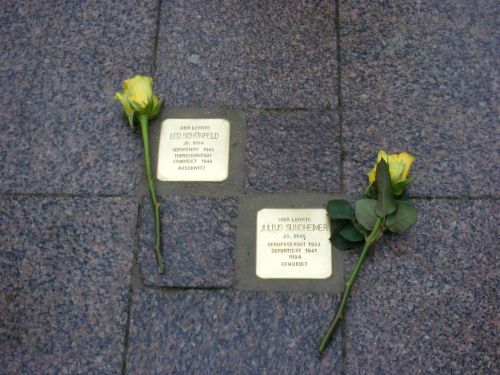 Am 27.11.13 verlegte der Künstler Gunter Demnig in Rinteln die ersten 15 Stolpersteine, die an jüdische Bürgerinnen und Bürger erinnern, die in der Zeit des Nationalsozialismus umgekommen sind oder fliehen mussten. Sowohl am ehemaligen Gebäude des Gymnasiums am Kollegienplatz als auch an drei anderen Standorten in der Innenstadt wurden die Steine verlegt. Unter anderem sind die Steine Julius Sundheimer, Studienrat für Mathematik und Physik in Rinteln von 1931 bis 1933, sowie drei Schülern unseres Gymnasiums gewidmet. Der Rahmen für die Verlegung wurde gestaltet von Schülerinnen und Schülern des 6. Und 12. Jahrgangs, die Fotographien der Ermordeten präsentierten, kurze Biographien der Personen verlasen und die Gedenkfeier musikalisch gestalteten. Finanziert wurde die Verlegung durch Rintelner Privatleute, durch ehemalige und aktuelle Schüler des Ernestinums, durch die Schule selbst sowie durch einen unterstützenden Beitrag der Stadt Rinteln. Mehr Fotos und ein ausführlicher Bericht