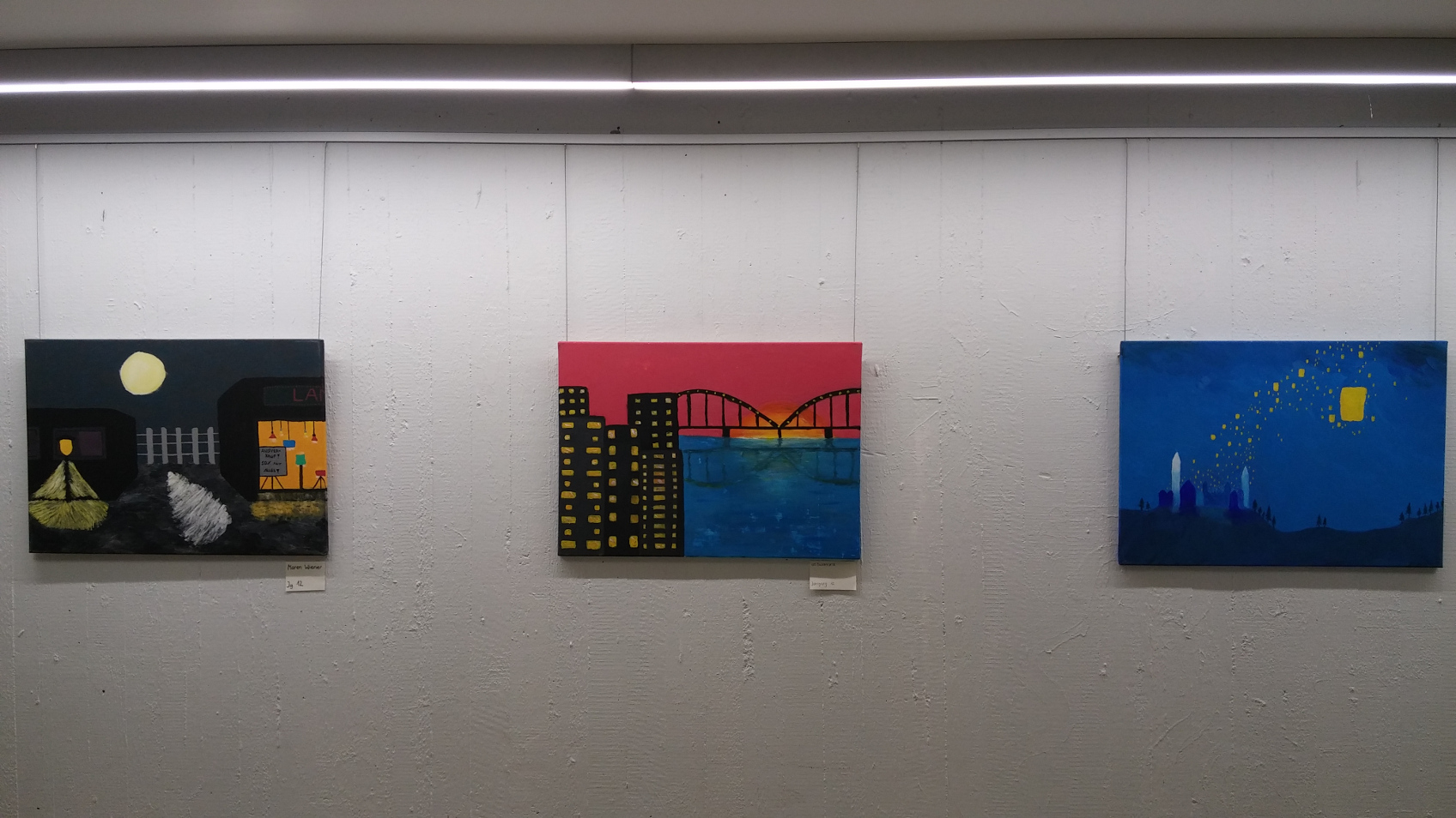 Zur Zeit stellt der Kunstkurs des Abiturjahrgangs 2016 seine Werke zum Thema „Licht“ aus.