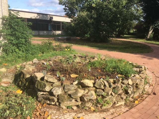 Nachdem der neue Hofbereich hinter dem Schulgebäude nun fertig angelegt ist, er trägt jetzt den Namen „Park 1“ und „Park 2“, konnte die Kräuterspirale auch neu bepflanzt werden. Unzählige Küchenkräuter wurden von der AG unter der Leitung von Frau Jacob und Frau Schade als vorerst zarte Pflänzchen in die Erde gesetzt. In der nächsten Zeit werden noch ausführliche Beschreibungen, auch zur Verwendung der Kräuter, hinzukommen.