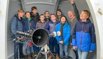 wollte, hatte die Möglichkeit, an einer Hausführung durch Schüler teilzunehmen – diese gehören mittlerweile zu den beliebtesten Angeboten an diesem Tag. Wer sich jedoch den großen Überblick über das Gelände der Schule verschaffen wollte, war am besten auf dem Dach aufgehoben, genauer gesagt, in der neu errichteten Sternwarte mit Blick auf den Schulhof.