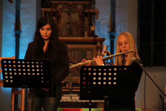 Besondere Aufmerksamkeit erregte der Erweiterungskurs Musik mit seinen selbst gebauten Holztrommeln, auf denen ein Samba-Rhythmus getrommelt wurde, der in einem anderen Umfeld sicher zum fröhlichen Weihnachtstanz geführt hätte und wahre Jubelstürme unter den Zuhörern auslöste. Und dann war da auch Tatevik Oganissian, die mit ihrer wohltönenden Stimme und begleitet von Christina Gniesmer an der Querflöte, ruhig und souverän das romantische Weihnachtslied „In the Bleak Midwinter“ sang, einfach nur berührend.