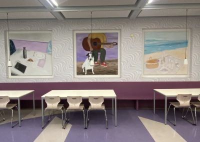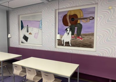 Am 25.01.2026 fand die angekündigte Vernissage der beiden Kunst Leistungskurse statt. Die neuen Leinwände in der Mensa und die künstlerischen Arbeiten im Kunstflur bleiben für interessierte Schüler:innen und Lehrkräfte noch eine Weile zugänglich. Schauen Sie/Schaut ihr doch mal vorbei!